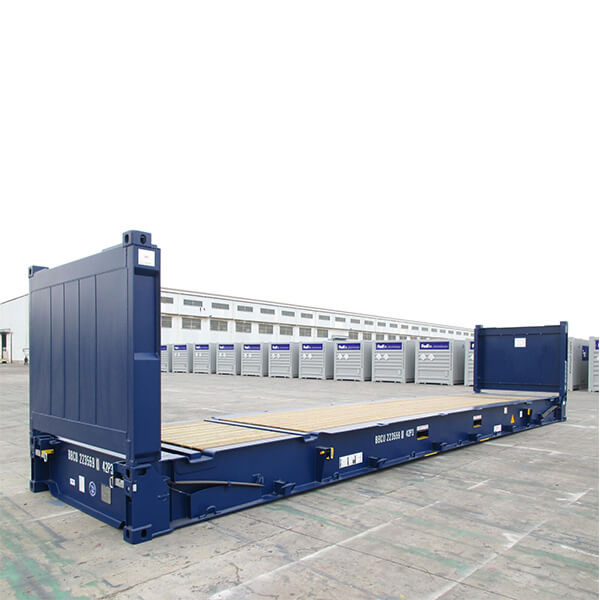 Flat Rack containers are called containers that only have a floor and two transverse sides of the container (that is, they have no left wall and right wall and no roof). These containers are used to load special goods, and if needed, after loading, the longitudinal parts and the roof are covered with a special tent; Such as transporting heavy machinery, vehicles on the road, large pulleys, construction materials, etc.